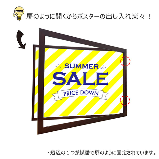 ウリサポ木製 ポスターパネル A1サイズ 【フレーム35mm】フレームはマグネット仕様! ■マグネット使用可能なホワイトボード■木製フレームは正面から開閉が可能な作りでポスターとの大判ポスターと組み合わせて掲示もOK■木製フレームが高級感を演出、イーゼルとの相性が◎■付属品を使えば壁掛け壁に取り付け...