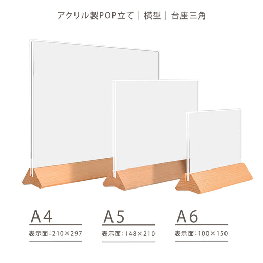 ウリサポアクリルの板面が美しく、木製台座がとても良い POPやメニュー立てに! <台座三角タイプ> 台座はブナ製です。プライスカードや写真立てとしても活躍します! ■透明度の高いアクリルを使用しているため、表示の見た目を損なうことはありません。 ■アクリル板と台座の隙間にシリコンカバーが付くため安...