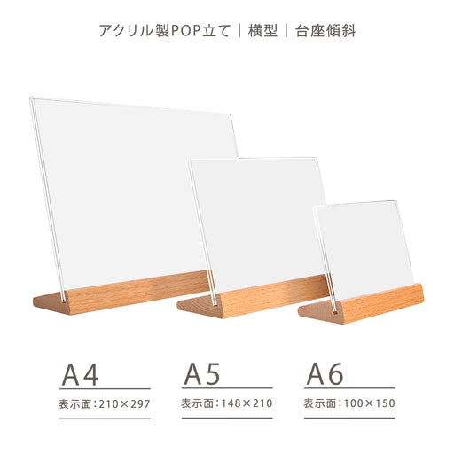 ウリサポアクリルの板面が美しく、木製台座がとても良い POPやメニュー立てに! <台座に展望付き・斜め掲示タイプ> 台座はブナ製です。プライスカードや写真立てとしても活躍します! メニュー立てや写真立てとしても活躍します! ■透明度の高いアクリルを使用しているため、開示の見た目を損なうことはありま...