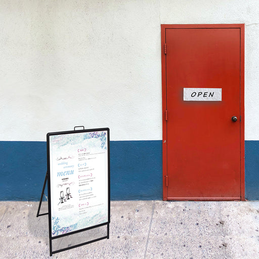 ウリサポ商 品 の 特 徴 スリムでスタイリッシュなフレーム幅25mmタイプ! 全高1m以下 【A1サイズ 片面 黒】 どんな場所にも馴染むウリサポの定番スタンド!大手ショッピングセンター、商業施設、飲食店、学校、病院などよく見かける、あの看板です♪ フロントオープンパネル採用で入れ替え簡...